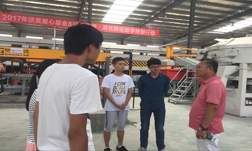 董事長助理姚總為學(xué)生講解混凝土輕集料空心板生產(chǎn)線