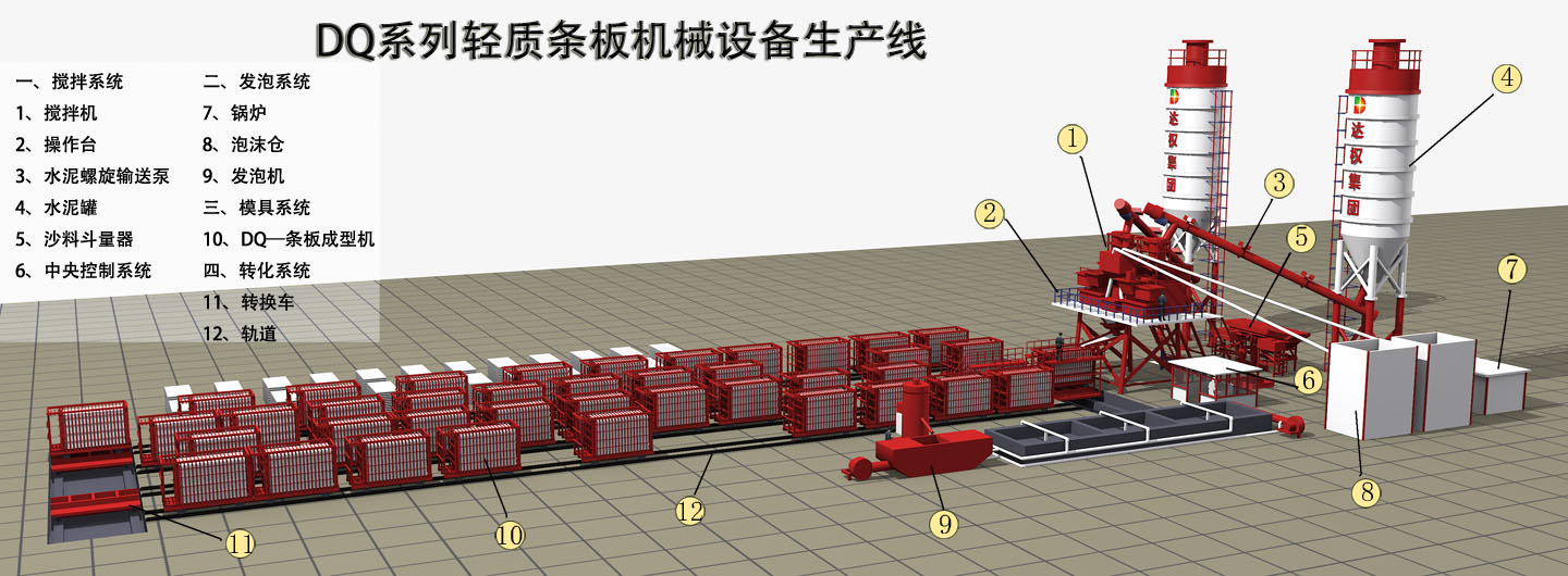 優(yōu)點(diǎn):安全、靈活,可自行調(diào)節(jié)生產(chǎn)板材厚度50-200mm各類厚度板材,產(chǎn)量高、投資比例少、收益大,適合年產(chǎn)五十萬平方以上規(guī)模的板材生產(chǎn)