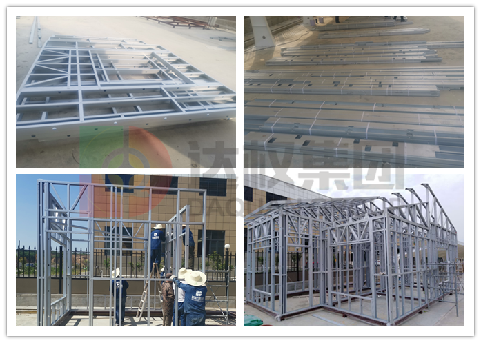 2、輕鋼龍骨安裝:房屋根據(jù)鋼構(gòu)設(shè)計(jì)定制龍骨,該結(jié)構(gòu)體系所有配件均在工廠完成生產(chǎn)加工,直接運(yùn)往現(xiàn)場(chǎng)進(jìn)行安裝,連接部位使用自攻釘進(jìn)行固定。