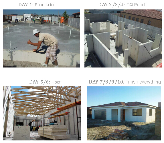 達(dá)權(quán)房屋的主要墻體材料為達(dá)權(quán)輕質(zhì)節(jié)能保溫夾芯墻板,為新型環(huán)保的墻體建筑材料,以4.5毫米厚的硅酸鈣板為面板,以42.5硅酸鹽水泥,聚苯乙烯泡沫,黃沙等優(yōu)質(zhì)原材料為芯料。板材長度為2440、2270毫米,寬度為610毫米,厚度為60-180毫米。